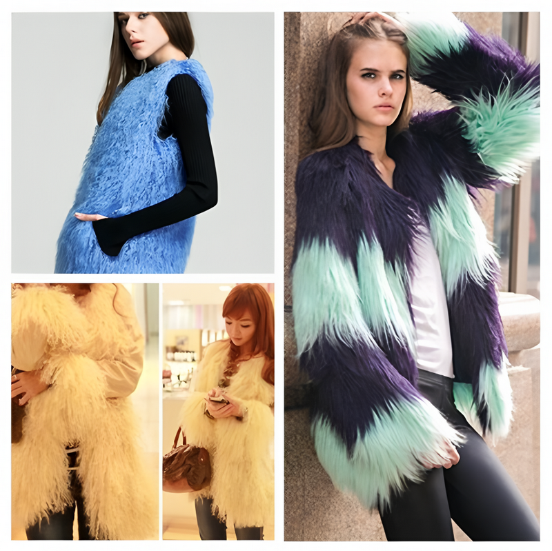 luxurious long pile plush shaggy faux fur fabric is a top-of-the-line choice that mimics the look and feel of real fur. With an exceptionally soft texture, this fabric is perfect for a variety of creative projects. Crafted from 100% acrylic, this fabric boasts a width of 60" / 70" ,pile length from 1.5 inch to 5 inches and density upto 2600GSM, making it both durable and versatile. The impressive pile length of about 2 inches to 4 inches adds a plush, cozy feel, ideal for enhancing your home decor and fashion accessories.